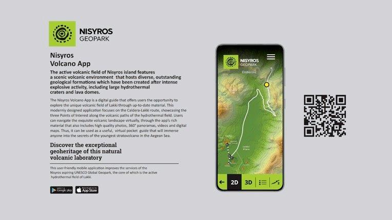 Πρόκειται για ένα mobile application συμβατό με Android και iOS, που συνδυάζει ξενάγηση και διαδραστικότητα με τη μοναδική γεωλογική κληρονομιά του ενεργού ηφαιστειακού πεδίου, και που είναι πλέον διαθέσιμο όχι μόνο στους εκατοντάδες επισκέπτες που δέχεται το Γεωπάρκο ημερησίως, αλλά και στο ενδιαφερόμενο ευρύ κοινό.
