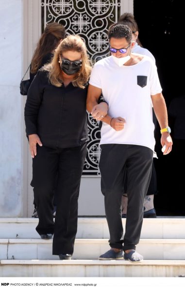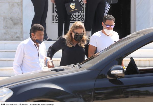 Την επιχειρηματία συνόδευσε ο γιος της, Γιώργος. Ο πόνος της για την απώλειά του ήταν εμφανής.
