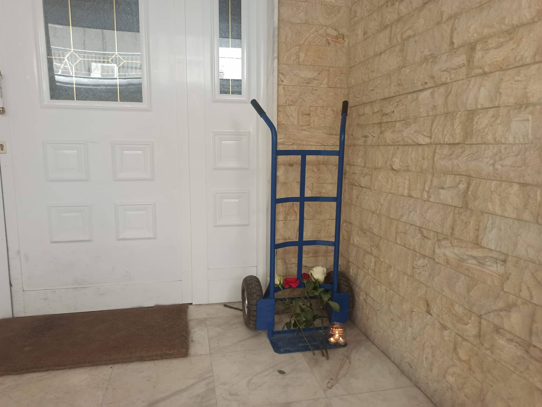 Με ένα λουλούδι κι ένα κεράκι δίπλα στο καρότσι μεταφοράς, με τον οποίο προσπάθησε ο άτυχος 26χρονος να μεταφέρει το ψυγείο και το οποίο βρίσκεται στην είσοδο της πολυκατοικίας αλλά και με μηνύματα στα μέσα κοινωνικής δικτύωσης αποχαιρετούν το συνάδελφο τους που τόσο άδικα έφυγε από τη ζωή οι υπάλληλοι της εταιρίας delivery στις Σέρρες.