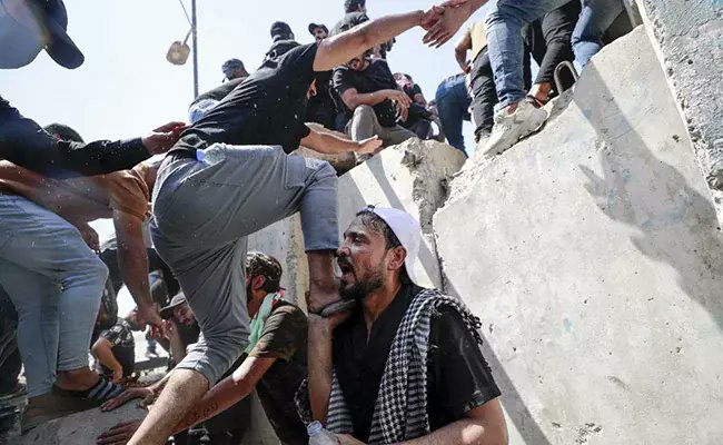 Με ιρακινές σημαίες, πορτρέτα του Μοκτάντα Σαντρ ή θρησκευτικών μορφών στα χέρια, εισέβαλαν στο χολ και κατόπιν στο ημικύκλιο, κάνοντας το σήμα της νίκης ή τραβώντας σέλφι, σε ατμόσφαιρα γιορτής, διαπίστωσαν δημοσιογράφοι του Γαλλικού Πρακτορείου επιτόπου.