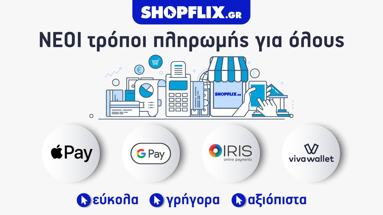 Τώρα, οι πελάτες του SHOPFLIX.gr έχουν ακόμα περισσότερες επιλογές για να ολοκληρώσουν την παραγγελία τους: