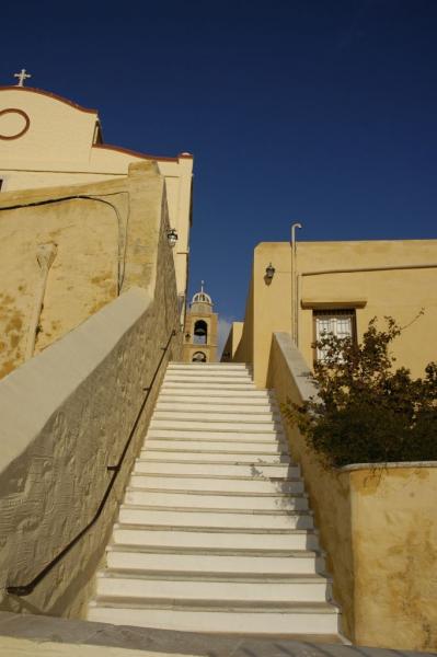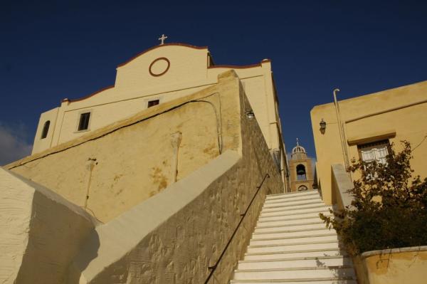 Τοπόσημο και σημείο αναφοράς για ολόκληρη τη Σύρο, ο μεγαλοπρεπής ναός του Σαν Τζώρτζη, η μητρόπολη των καθολικών του νησιού, δεσπόζει στην κορυφή του ομώνυμου λόφου της Άνω Σύρου, ενός γοητευτικού οικιστικού συνόλου με μεσαιωνικό χρώμα και μαγευτική θέα.