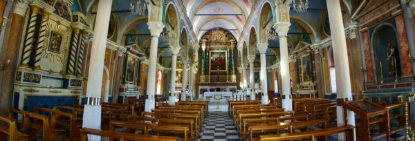 Την είσοδο του ναού, που κοσμείται με τοιχογραφίες και πολλές φορητές εικόνες, στολίζουν αγάλματα αγίων, φιλοτεχνημένα από ιταλούς γλύπτες του 18ου αιώνα.