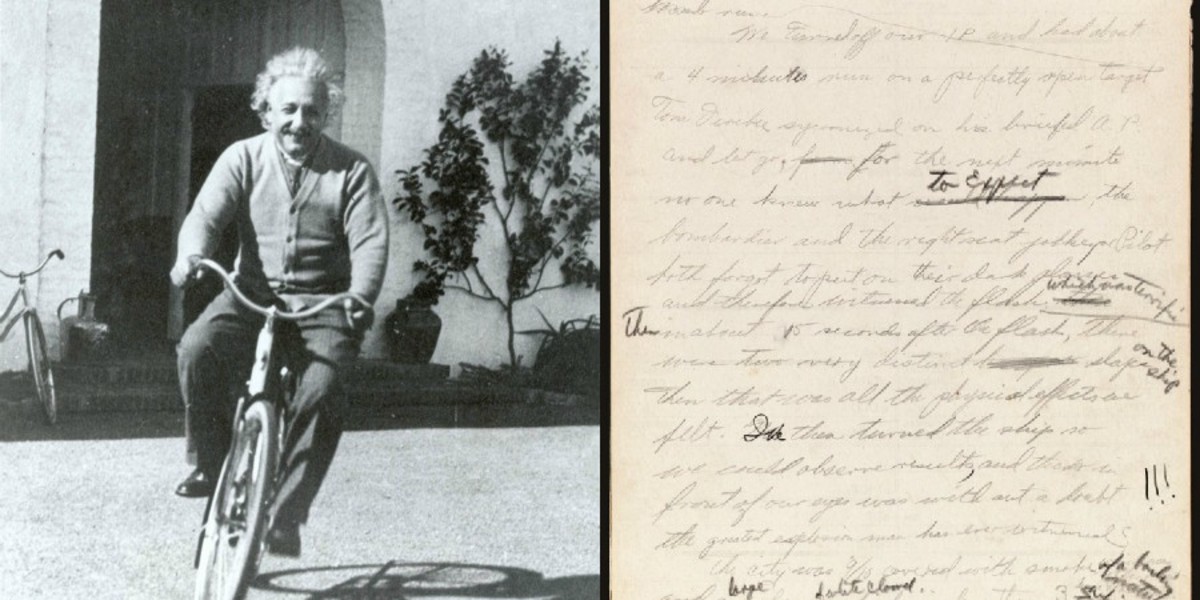 Ο Αϊνστάιν είχε μόλις πληροφορηθεί ότι θα πάρει το Νόμπελ Φυσικής και έτσι φέρεται να είπε στον ταχυδρόμο που του παρέδωσε ένα μήνυμα στο δωμάτιο του ξενοδοχείου του, στο Τόκιο, πως, εάν είναι τυχερός, αυτά τα σημειώματα θα αποκτήσουν πολύ μεγαλύτερη αξία από ένα κανονικό φιλοδώρημα.