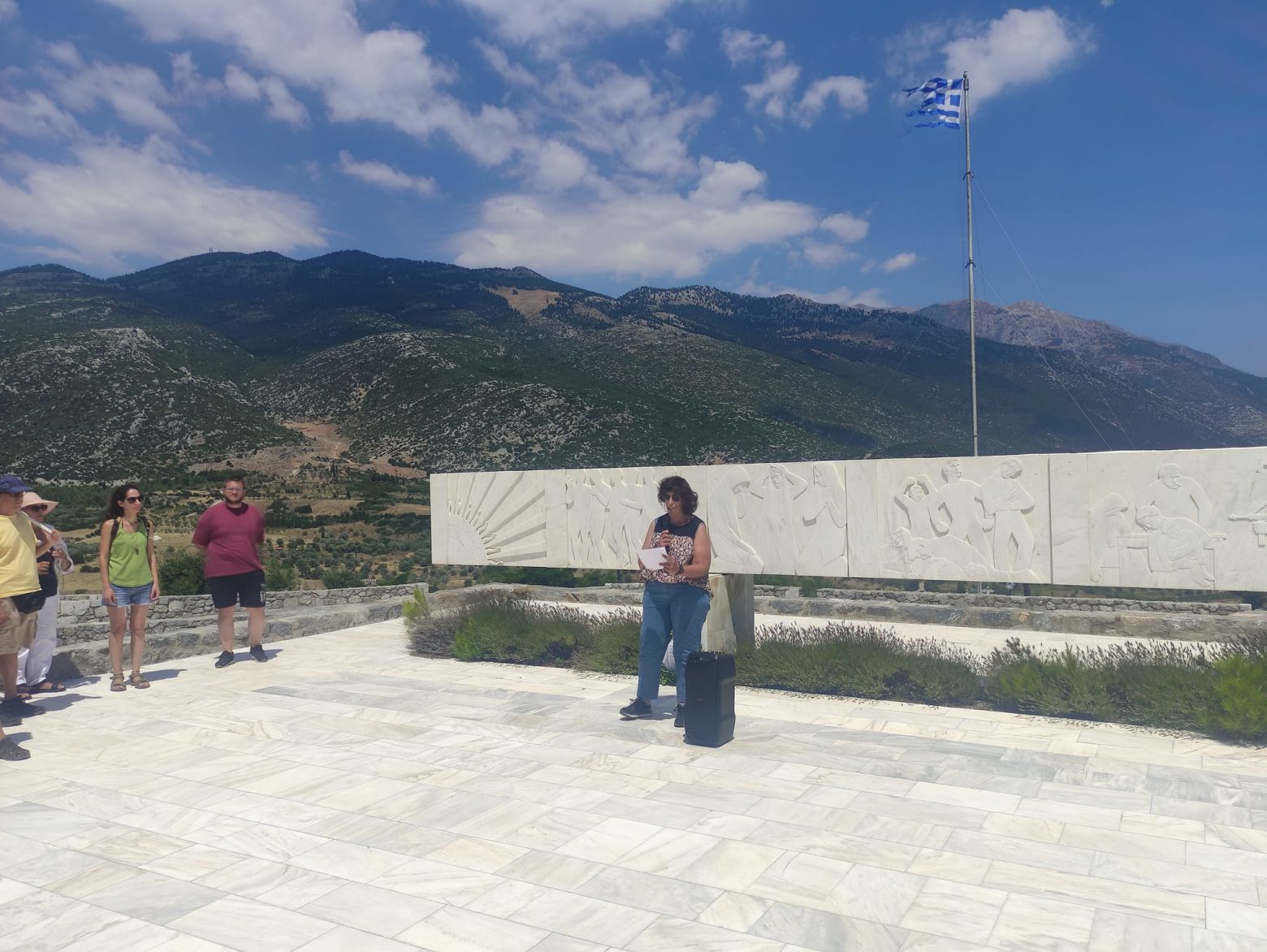 Στο Δίστομο και στους Δελφούς η επίσκεψη έγινε την περασμένη Τρίτη 2/8 στο πλαίσιο μονοήμερης εξόρμησης. Στον αρχαιολογικό χώρο των Δελφών πραγματοποιήθηκε ξενάγηση για τα μέλη και τους φίλους της Πορείας, ενώ επόμενος σταθμός της εκδρομής ήταν ο μαρτυρικός τόπος του Διστόμου.