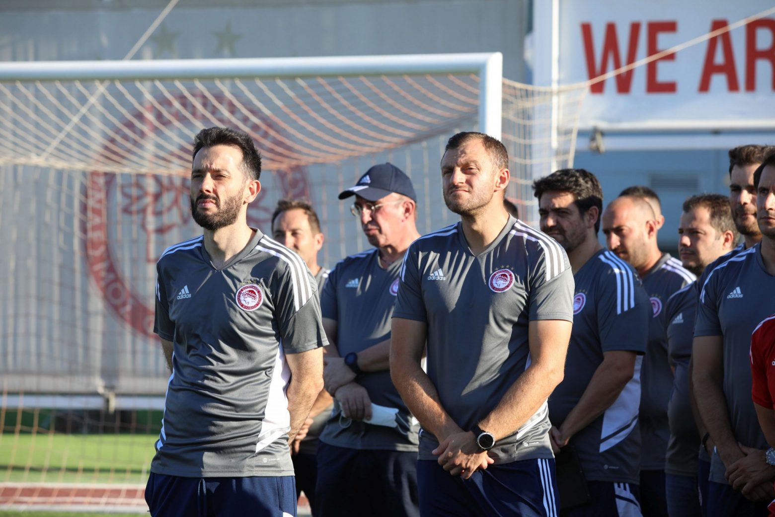 Μετά την παρουσίαση και τη συνέντευξη Τύπου του Ισπανού τεχνικού, οι ερυθρόλευκοι πραγματοποίησαν την τελευταία προπόνηση πριν το ματς με τους Σλοβάκους, ενώ τέλεσαν και τον καθιερωμένο αγιασμό για τη νέα σεζόν, παρουσία του ηγέτη του συλλόγου, Βαγγέλη Μαρινάκη.
