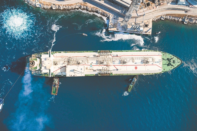 Εδεσε στη Ρεβυθούσα, στις εγκαταστάσεις του τερματικού σταθμού LNG του ΔΕΣΦΑ, το δεξαμενόπλοιο που θα χρησιμοποιηθεί για την αποθήκευση πρόσθετων φορτίων υγροποιημένου φυσικού αερίου.