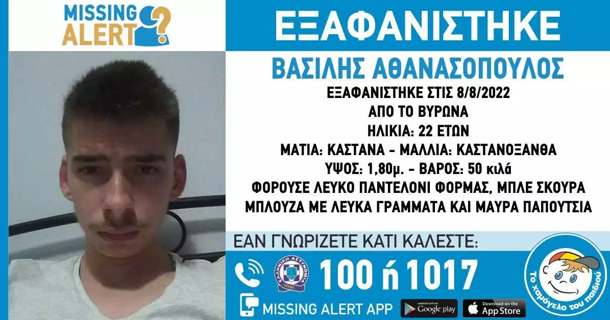 Δείτε τη φωτογραφία και τα στοιχεία του 22χρονου που εξαφανίστηκε στον Βύρωνα.