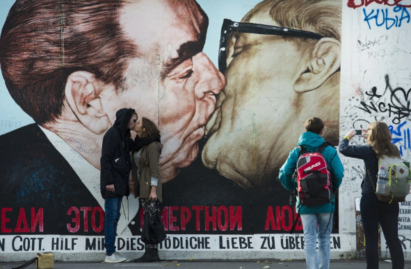 Το φιλί ανάμεσα στους δύο ηγέτες δημιουργήθηκε το 1990 και έχει ονομαστεί το «φιλί της σοσιαλιστικής αδελφότητας» είναι ένα από τα πιο γνωστά έργα της περιόδου μετά τη λήξη του Ψυχρού Πολέμου και ένα από τα πιο αναγνωρίσιμα αξιοθέατα του Βερολίνου. Ο επίσημος τίτλος του είναι «Θέε μου, βόηθα με να επιβιώσω απ’ αυτή τη θανάσιμη αγάπη».
