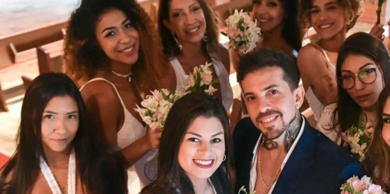 Το εθισμένο στο σεξ νεαρό μοντέλο και σταρ του Only Fans πέρσι έγινε πρωτοσέλιδο όταν παντρεύτηκε με εννέα γυναίκες ταυτόχρονα σε μια τελετή. Ο γάμος τους ωστόσο δεν έχει νομική υπόσταση καθώς στο Σάο Πάολο αλλά και σε όλη τη Βραζιλία η πολυγαμία είναι παράνομη.