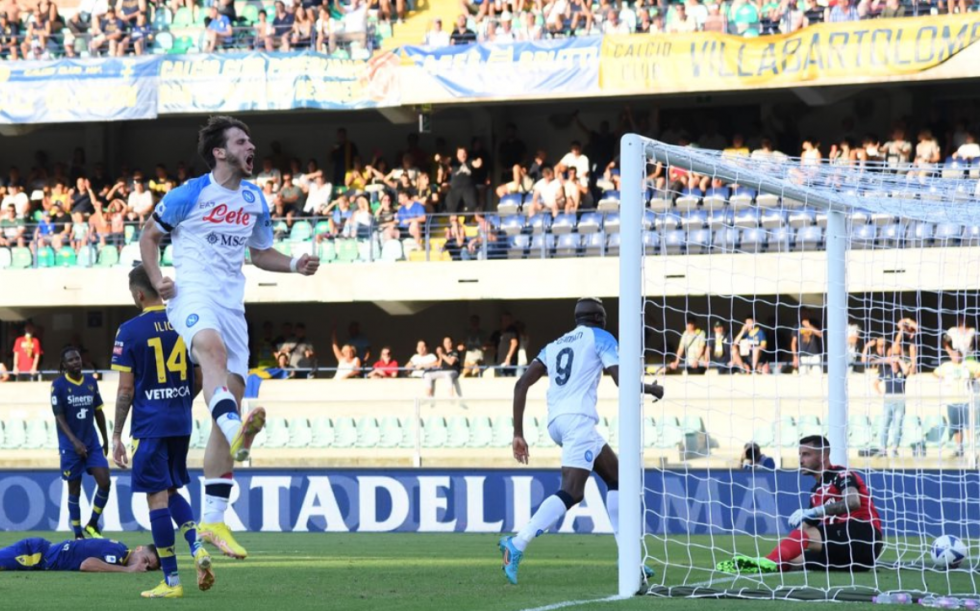 Στο 35’ ο Κβαρατσχέλια με τρομερό σουτ έξω από την περιοχή άνοιξε το σκορ για τους «παρτενοπέι» και στο 45+2’ ο Ανγκισά άνοιξε δεξιά στον Οσιμέν που πάτησε περιοχή και με διαγώνιο σουτ έγραψε το 2-0.