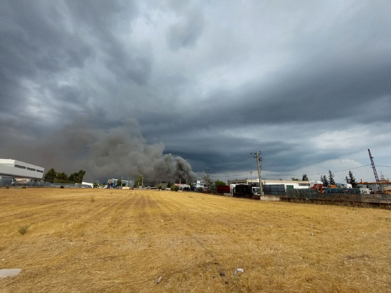 Η φωτιά καίει σε εταιρεία ανακύκλωσης μετάλλων, χωρίς να υπάρχει κίνδυνος επέκτασης του μετώπου.