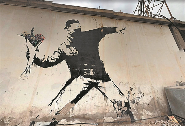 Με το στένσιλ όπου ένας διαδηλωτής εμφανίζεται να πετάει ένα μπουκέτο λουλούδια αντί για βόμβα μολότοφ, ο πιο διάσημος σύγχρονος street artist, ο Βρετανός Μπάνκσι, στέλνει ένα μήνυμα ελπίδας και ειρήνης αφού το έργο του δημιουργήθηκε στην Ιερουσαλήμ το 2003.