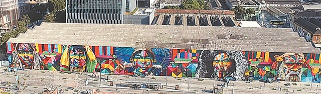 Ο Εντουάρντο Κόμπρα, ένας από τους σημαντικότερους street artists παγκοσμίως, γνωστός για την τεχνική του όπου επαναλαμβάνει διαρκώς τρίγωνα και τετράγωνα στις εικόνες του, έφτιαξε το μεγαλύτερο γκραφίτι του κόσμου (πιστοποιημένο από το Βιβλίο Ρεκόρ Γκίνες) στο λιμάνι του Ρίο ντε Ζανέιρο στη Βραζιλία, με αφορμή τους Ολυμπιακούς Αγώνες του 2016. Εχει ύψος 15,5 μέτρα και πλάτος 170 μέτρα, ενώ καλύπτει μια επιφάνεια περίπου 90 τ.μ.