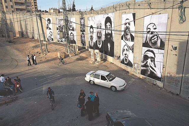 Στη συνέχεια τοποθέτησε τις φωτογραφίες ως αφίσες μεγάλων διαστάσεων στις δύο πλευρές του τείχους στη Δυτική Οχθη αλλά και σε κομβικά σημεία των γύρω περιοχών.