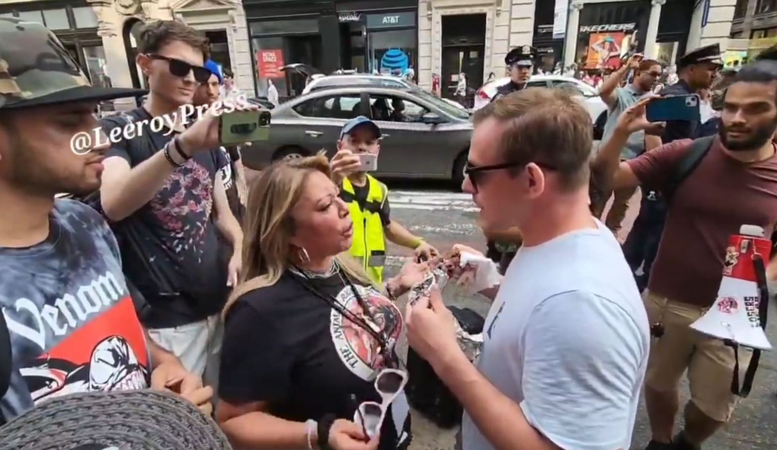 Ένα πραγματικό χαμό έκανε ένας νεαρός άνδρας κατά τη διάρκεια διαμαρτυρίας από vegans στο Μανχάταν της Νέας Υόρκης.