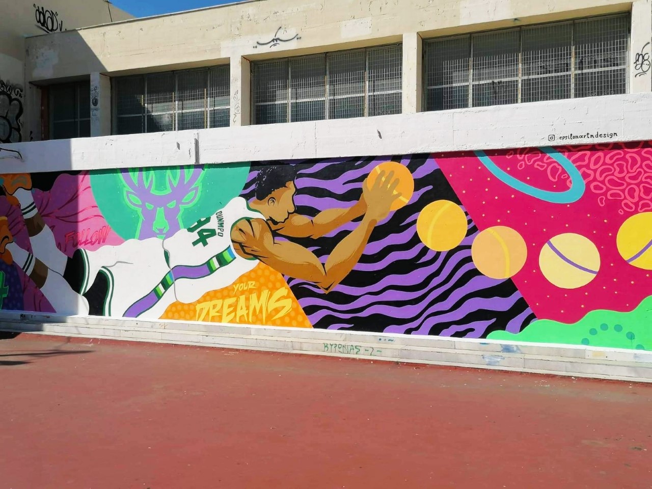 Ο Γιάννης Αντετοκούνμπο τοιχογραφία στο 8ο Δημοτικό Βύρωνα
