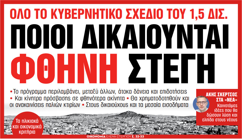 Στα «Νέα Σαββατοκύριακο»: Ποιοι δικαιούνται φθηνή στέγη