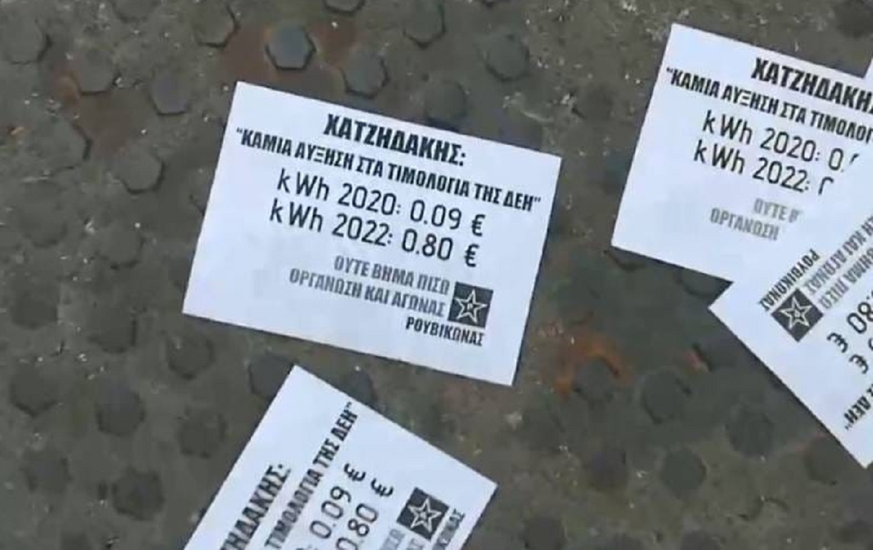 Νέα παρέμβαση έκανε σήμερα ο Ρουβίκωνας στο Παλαιό Ψυχικό. Σύμφωνα με πληροφορίες, μέλη της οργάνωσης πήγαν έξω από το σπίτι του υπουργού Εργασίας, Κωστή Χατζηδάκη, και πέταξαν τρικάκια με συνθήματα. Η παρέμβαση έγινε το απόγευμα της Κυριακής μετά από μοτοπορεία που πραγματοποιούσαν τα μέλη του Ρουβίκωνα.