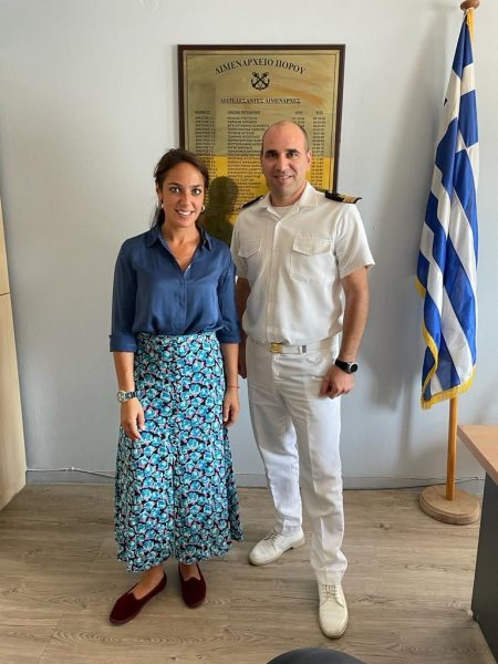Η Δόμνα Μιχαηλίδου συναντήθηκε με το δήμαρχο Πόρου, Ιωάννη Δημητριάδη, και ενημερώθηκε για τα τρέχοντα ζητήματα, όπως η αποκατάσταση των βασικών υποδομών του νησιού, η αναβάθμιση των κοινόχρηστων χώρων και του λιμανιού, αλλά και η έλλειψη επαγγελματικού κλιμακίου της Πυροσβεστικής.