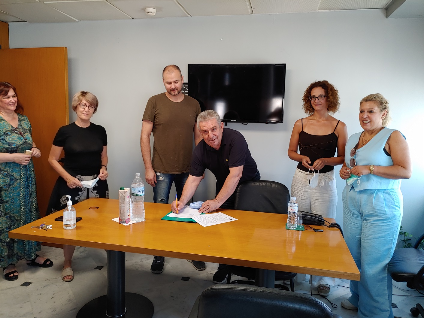 Στην υπογραφή Συμφώνου Συνεργασίας για τη διάχυση του καινοτόμου έργου με τίτλο «Πιλοτικές Δράσεις για την Προώθηση των Ευπαθών Ομάδων και των Νέων στην Απασχόληση» και φορέα λειτουργίας τη Διεύθυνση Κοινωνικής Προστασίας και Υγείας του Δήμου, προχώρησαν ο Δήμαρχος Ιλίου Νίκος Ζενέτος και ο πρόεδρος του Εμπορικού Συλλόγου Ιλίου Παύλος Μαντέλος.