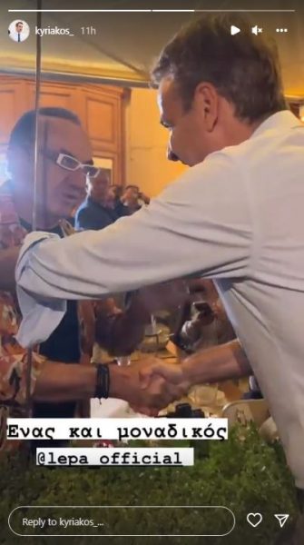 Ο πρωθυπουργός συνομίλησε με τον τραγουδιστή και ανέβασε «story» στο Instagram με τη λεζάντα «ένας και μοναδικός lepa_official».