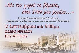 Με αφορμή την συμπλήρωση 100 ετών από την θλιβερή επέτειο της Μικρασιατικής Καταστροφής, η Ιερά Μητρόπολη Νέας Ιωνίας, Φιλαδελφείας, Ηρακλείου και Χαλκηδόνος τιμά τις ρίζες της στο Ηρώδειο με μία επετειακή μουσικοχορευτική εκδήλωση.