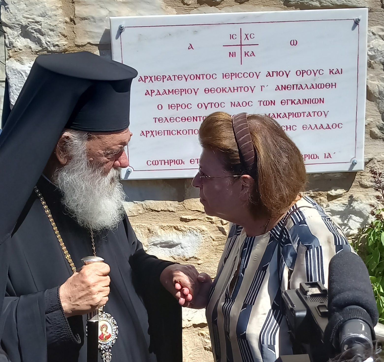 Τέλος, η Υπουργός τιμήθηκε από τον Αρχιεπίσκοπο Αθηνών και Πάσης Ελλάδας κ.κ. Ιερώνυμο Β, με την ύψιστη διάκριση της Ιεράς Μητρόπολης Ιερισσού, Αγίου Όρους και Αρδαμερίου για τη συμβολή του Υπουργείου Πολιτισμού και Αθλητισμού στο έργο της αποκατάστασης του βυζαντινού ναού Αγίου Ανδρέα Περιστερών, στη Θέρμη Θεσσαλονίκης. Πρόκειται για βυζαντινό ναό του 9ου αι., επί παλαιότερου παλαιοχριστιανικού, με εξαιρετικό αρχιτεκτονικό και αρχαιολογικό ενδιαφέρον, που αποτελούσε Καθολικό Μονής που ιδρύθηκε από τον Όσιο Ευθύμιο τον εν Περιστεραίς.