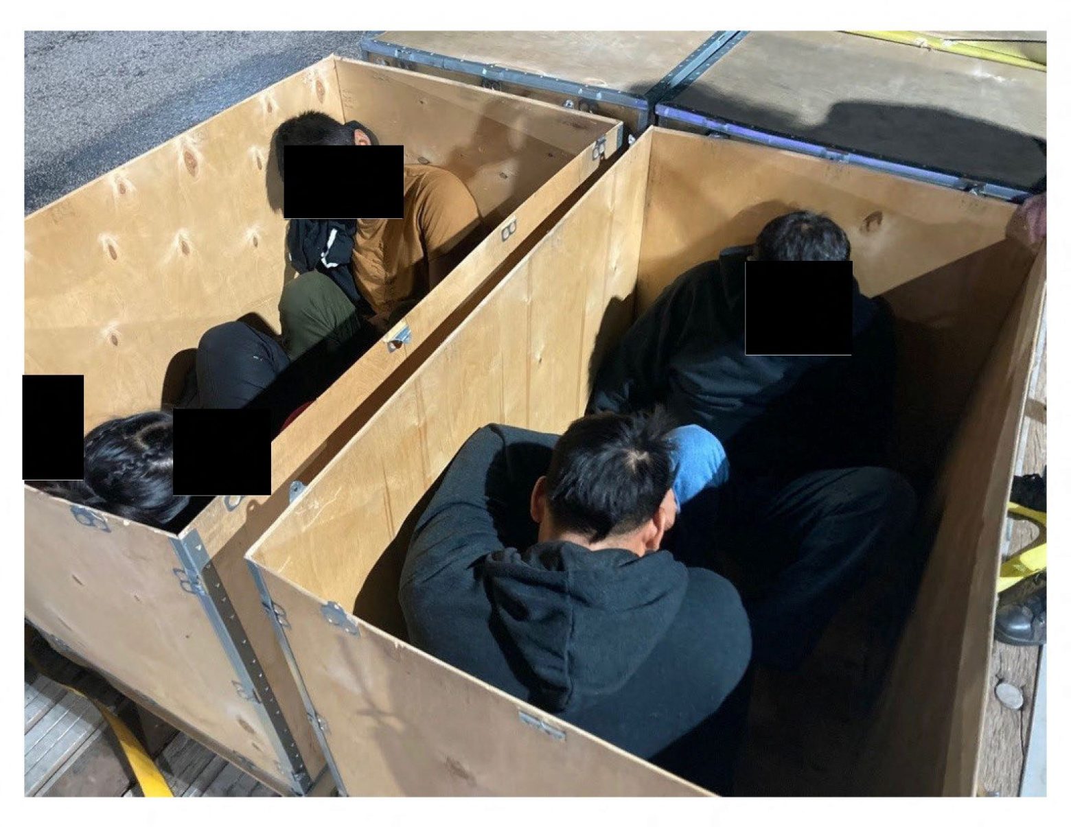 Μετανάστες που πιστεύεται ότι διέσχισαν τα σύνορα από το Μεξικό προς τις ΗΠΑ, φαίνονται μέσα σε ξύλινα κιβώτια, σε φωτογραφίες που ήρθαν στο φως της δημοσιότητας.