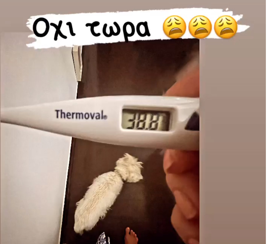 Ωστόσο λίγα 24ωρα πριν την πρεμιέρα η παρουσιάστρια είχε μια αδιαθεσία. Συγκεκριμένα, ανέβασε πυρετό, όπως έκανε γνωστό μέσα από τον προσωπικό της λογαριασμό στο Instagram. Στη φωτογραφία δείχνει ένα θερμόμετρο με τη θερμοκρασία να έχει ανέβει στους «38,8», και η ίδια να λέει: «Όχι, τώρα».