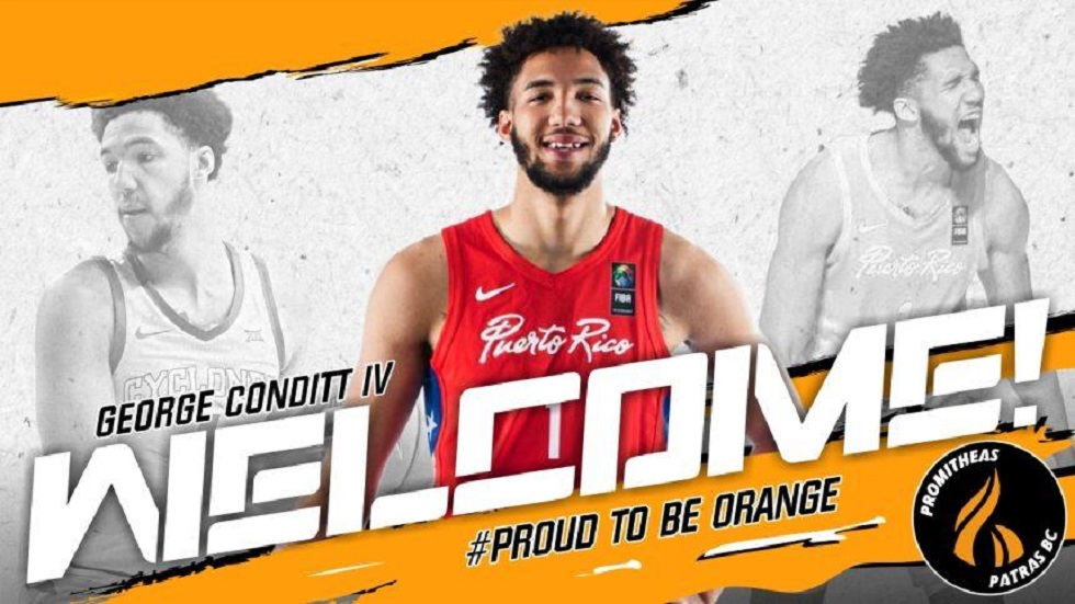 «Η ΚΑΕ Προμηθέας ανακοινώνει την έναρξη της συνεργασίας της με τον Πορτορικανό διεθνή αθλητή George Conditt IV, o οποίος την σεζόν 2022-23 θα αγωνίζεται με την φανέλα της ομάδας μας.