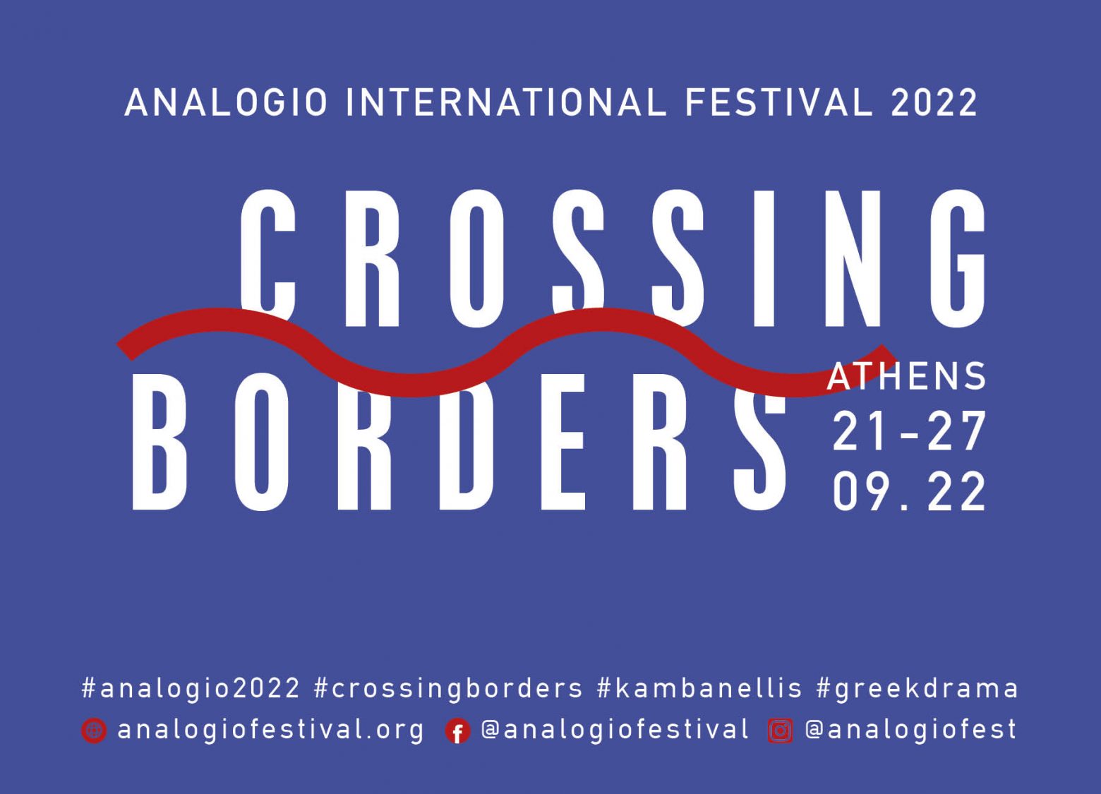 Από το Heartbreak Hotel τής μετά θάνατον ζωής μέχρι την παράνομη μετανάστρια στα σύνορα, το ταξίδι ανάμεσα στα κύματα, στις φωνές της διασποράς, στις μνήμες του ξεριζωμού, στα αερόφυτα και στη νέα ζωή, το 19ο Διεθνές Φεστιβάλ Αναλόγιο επιστρέφει από 21 έως 27 Σεπτεμβρίου 2022, διασχίζοντας σύνορα με νέα θεατρικά έργα και τον Ιάκωβο Καμπανέλλη.