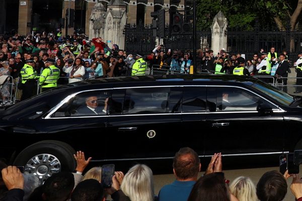 Ο Τζο και η Τζιλ Μπάιντεν έφτασαν στο Γουέστμινστερ Χολ με τη λιμουζίνα που μεταφέρει τον εκάστοτε πρόεδρο των ΗΠΑ στο εξωτερικό, το επονομαζόμενο «κτήνος».