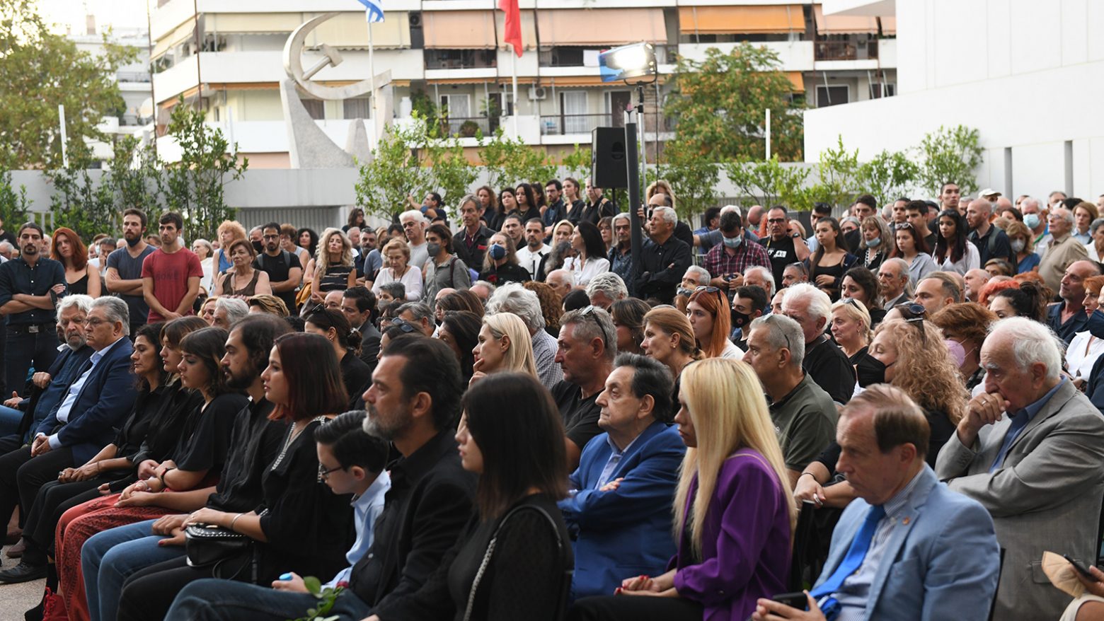 Και σημείωσε πως «όσοι, όσες είχαμε την ευκαιρία να γνωρίσουμε περισσότερο ή λιγότερο την οικογένειά σου, την αγαπημένη σου σύντροφο Τζένη, με την οποία μοιραστήκατε όλες τις χαρές και τις δυσκολίες της ζωής και της Τέχνης σας, τα παιδιά σου, βλέπαμε ότι η αύρα σου, ο τρόπος ζωής σου τους επηρέασε. Σκεπτόμαστε ότι αυτό δεν έγινε ούτε με επιβολή, ούτε με έναν κατάλογο τι πρέπει και δεν πρέπει. Το προσωπικό παράδειγμα, ο διάλογος, η συζήτηση, ήταν ο δικός σου δρόμος. Τους καμάρωνες, έλαμπαν τα μάτια σου όταν αναφερόσουν σ’ αυτούς».