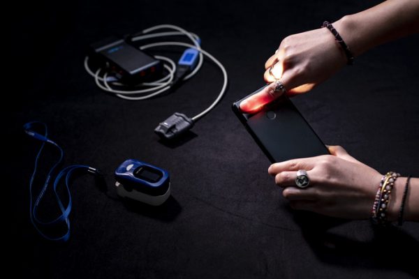 Η κάμερα τραβάει σε βίντεο το δάχτυλο ενώ φωτίζεται από το φλας (Dennis Wise/University of Washington)