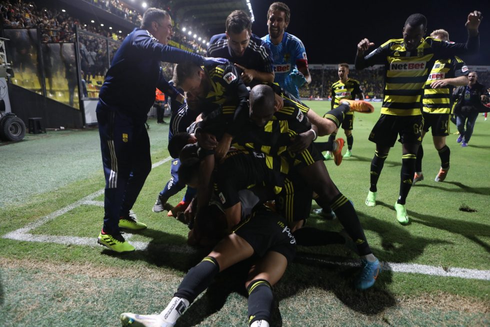 Ένας αποφασισμένος Άρης κέρδισε με 2-1 τον Ολυμπιακό στο Κλεάνθης Βικελίδης, σε ένα ντέρμπι με συγκλονιστική εξέλιξη. Ένα ονειρικό ντεμπούτο για τον Άλαν Πάρντιου που φάνηκε να απολαμβάνει ιδιαίτερα, εκτός από τη νίκη και το «φλογισμένο» Κλεάνθης Βικελίδης.