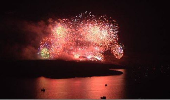 Η αναπαράσταση των εκρήξεων του ηφαιστείου ξεκίνησε με τη δύση του ήλιου, περίπου στις 20:00 και αποτέλεσε και φέτος ένα μοναδικό θέαμα για τους κατοίκους και τους επισκέπτες της Σαντορίνης και της Θηρασιάς.