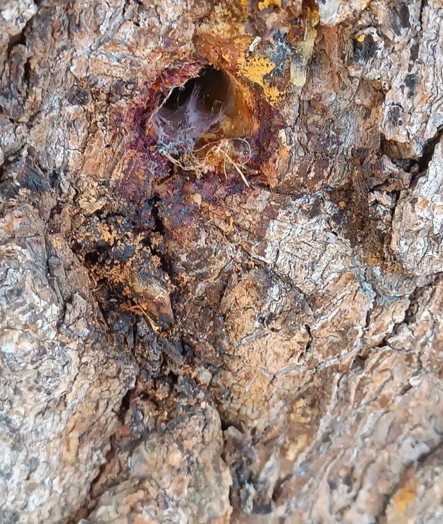 Κάποιοι οι οποίοι είχαν πρόθεση να το ξεράνουν, προσπάθησαν να ανοίξουν τρύπες μεγάλου διαμετρήματος, στον κορμό του δέντρου.