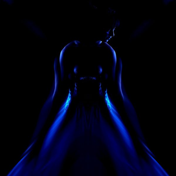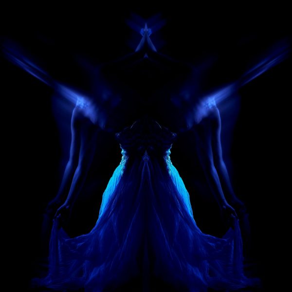 Αποφάσισα να ξεκινήσω από την επιλογή της χρωματικής παλέτας, κινήθηκα στο ψυχρό μπλε λόγω της έλλειψης θερμότητας στο σύμπαν, αλλά μου έλειπε ένα βασικό στοιχείο η κίνηση, και πως αυτή θα επιτευχθεί στο studio χωρίς την χρήση photoshop ή μέσω φωτογραφικής τεχνικής long exposure, γιατί ο σκοπός ήταν η σημειακή, επιλεκτική κίνηση. To άφησα λίγο στην άκρη λοιπόν για να σκεφτώ το φως και την τεχνική, κατέληξα στο low key σε πρώτη φάση, τονικότητες από 0 έως 5 του ζωνικού συστήματος από τον δάσκαλο Αnsel Αdams. Το αποτέλεσμα του πειραματισμού ήταν, εξαιτίας του λευκού φορέματος να εμφανιστούν και οι ζώνες 7 έως 8 στην εικόνα. Οπότε είχα ένα συνδυασμό high & low key, κάτι που μου άρεσε και το κράτησα. Έτσι είναι ο πειραματισμός, δοκιμάζεις κάτι, παράγεται πολλές φορές κάτι άλλο από αυτό που περίμενες, και αν σου αρέσει το συνεχίζεις, αλλιώς ξεκινάς πάλι από την αρχή.