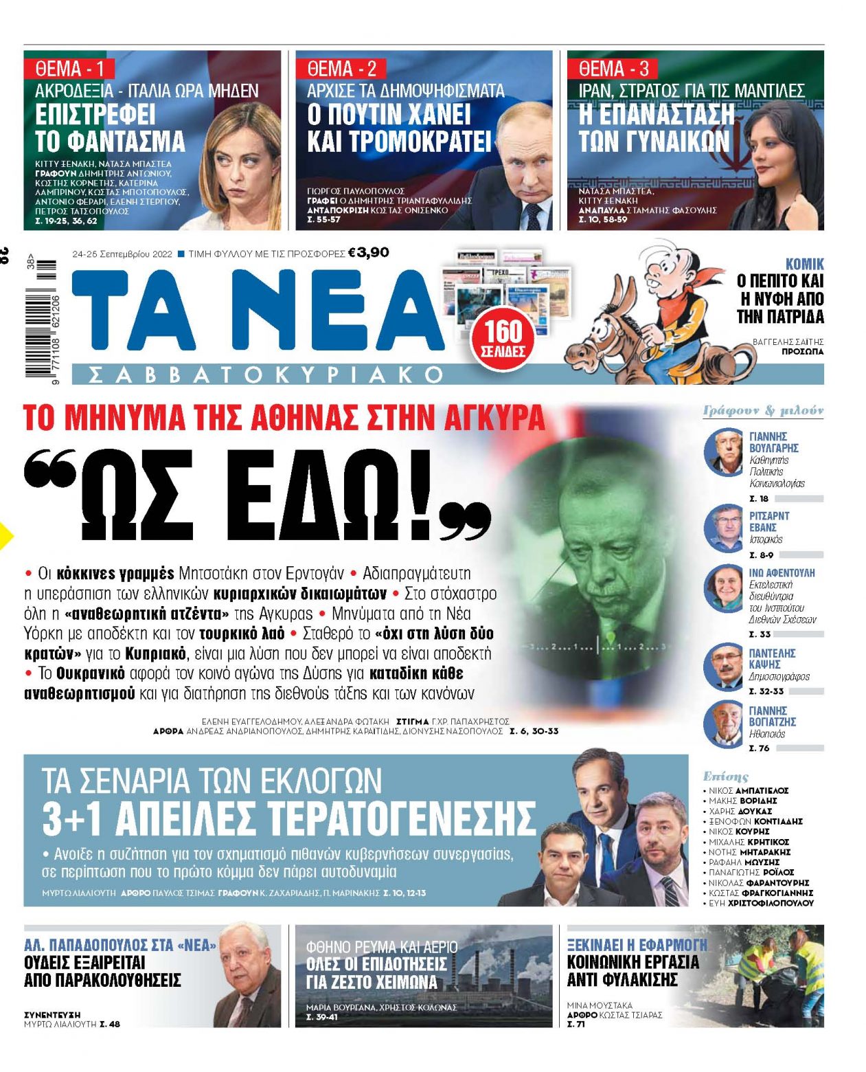Στα «Νέα Σαββατοκύριακο»: »Ως εδώ!», το μήνυμα της Αθήνας στην Άγκυρα