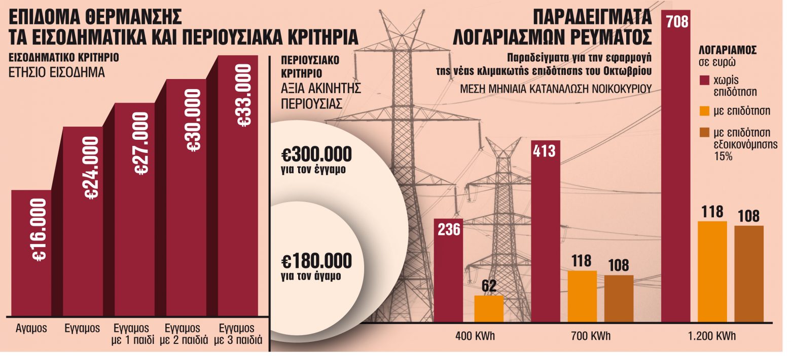 Με βάση εισοδηματικά και περιουσιακά κριτήρια τα νοικοκυριά θα λάβουν επίδομα θέρμανσης το οποίο θα είναι αυξημένο 16% – 17% σε σχέση με πέρυσι.