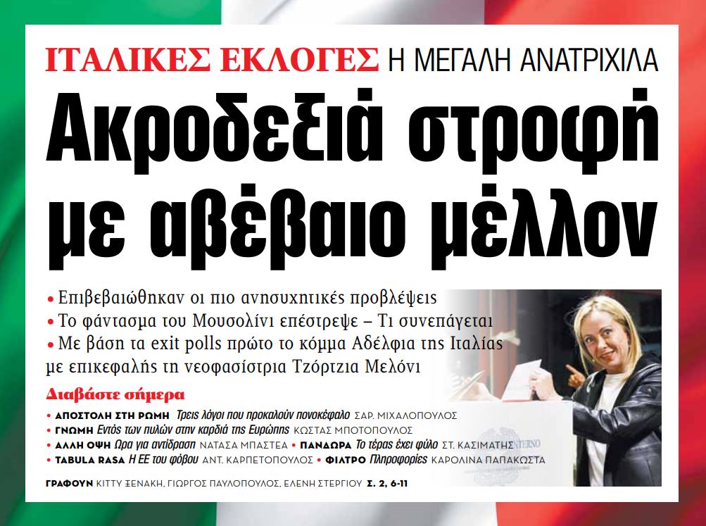 Στα «ΝΕΑ» της Δευτέρας: Ακροδεξιά στροφή με αβέβαιο μέλλον
