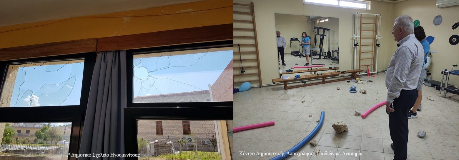 Αυτή τη φορά ομάδα ατόμων, κατά τις νυχτερινές ώρες, προξένησε ζημιές σε κτηριακές υποδομές εκπαίδευσης, σπάζοντας με πέτρες τα τζάμια στο 1ο Δημοτικό Σχολείο Ηγουμενίτσας και τα όργανα γυμναστικής στο εσωτερικό του Κέντρου Δημιουργικής Απασχόλησης Παιδιών με Αναπηρία «το εργαστήρι» ΚΔΑΠ-μεΑ «ΤΟ Εργαστήρι» .