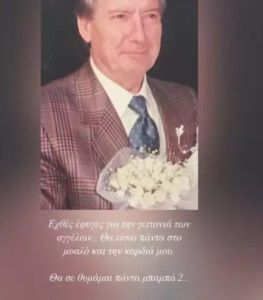 Έγραψε χαρακτηριστικά: «Χθες έφυγες για τη γειτονιά των αγγέλων. Θα είσαι πάντα στο μυαλό και την καρδιά μου. Θα σε θυμάμαι πάντα μπαμπά 2… Έφυγες γεμάτος αναμνήσεις, καλές και κακές στιγμές, πάλεψες με τους δαίμονές σου για χρόνια, έζησες πιο πολύ από ότι μπορούσες για εμάς. Θα σε συναντήσω στον επόμενο γύρο».