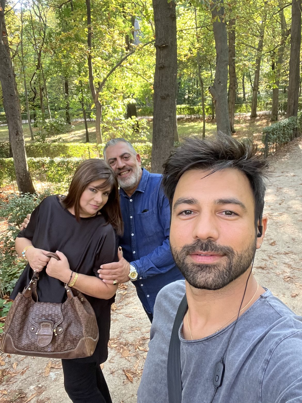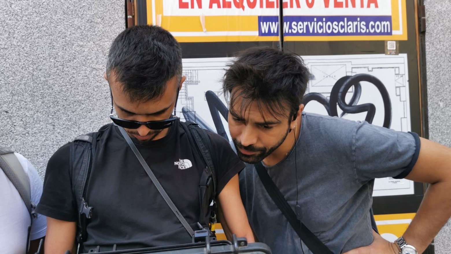 Ο σκηνοθέτης της «Γης της ελιάς», Αντρέας Γεωργίου, και οι ηθοποιοί Πασχάλης Τσαρούχας, Ιφιγένεια Τζόλα, Διονύσης Παπανδρέου, Liam Ireland, Ιζαμπέλλα Φούλοπ, Κούλλης Νικολάου και Βάσια Παναγοπούλου ταξίδεψαν στη Μαδρίτη για τις ανάγκες των γυρισμάτων, τα οποία πραγματοποιήθηκαν σε τοποθεσίες όπου χτυπά η καρδιά της πόλης καθώς και σε μεγαλοπρεπή μνημεία της και σημεία μεγάλου αρχιτεκτονικού ενδιαφέροντος.