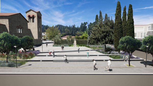 1: Ανάπλαση πλατείας Ι.Ν. Κοίμησης Θεοτόκου Αρχαίας Ολυμπίας με την οποία επιχειρείται να ενοποιηθεί λειτουργικά και αισθητικά το κενό μεταξύ του υφιστάμενου έργου ανάπλασης της εισόδου της Τ.Κ. Αρχαίας Ολυμπίας και της πεζοδρομημένης διαδρομής της Πραξιτέλους Κονδύλη που οδηγεί στον Αρχαιολογικό Χώρο της Ολυμπίας. Με την παρούσα ανάπλαση προτείνεται η αναβάθμιση της εικόνας της πλατείας μέσα από την ανάδειξη του μνημείου, σε συνδυασμό με την αξιοποίηση του αύλειου χώρου του Ναού με τον κατάλληλο σχεδιασμό και την χρήση ομοιογενών υλικών, η αναβάθμιση του φυτικού πλούτου, καθώς και του φωτισμού.