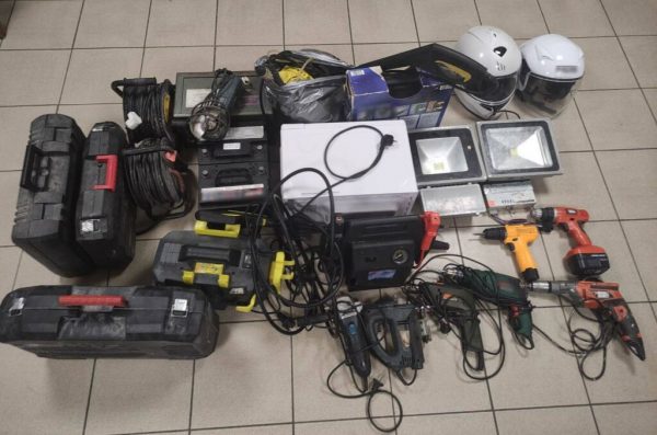 - ]Πλήθος αντικειμένων και εργαλείων (μπαταρίες αυτοκινήτων, χρηματοκιβώτιο, ηλεκτρικά εργαλεία κ.ά) η νόμιμη προέλευση των οποίων ερευνάται.