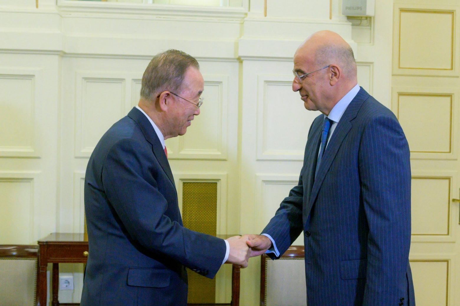 Σε συνάντηση σήμερα @GreeceMFA, ενημέρωσα τον πρώην ΓΓ του ΟΗΕ Ban Ki-moon για τις εξελίξεις στην Αν. Μεσόγειο & τις τρέχουσες διεθνείς προκλήσεις συμπεριλαμβανομένης της Ουκρανίας. Επανέλαβα την ακλόνητη προσήλωση της Ελλάδας στο Διεθνές Δίκαιο & τις αρχές του Χάρτη των ΗΕ. pic.twitter.com/oG4Ny2YRDP