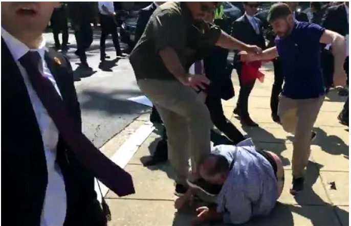 Υπενθυμίζεται ότι το 2017, οι άνδρες της ασφάλειας του Ρετζέπ Ταγίπ Ερντογάν είχαν επιτεθεί και χτυπήσει βίαια ειρηνικούς διαδηλωτές, που βρίσκονταν έξω από την κατοικία του Τούρκου πρέσβη και, στη συνέχεια, είχαν εμπλακεί σε αψιμαχίες με το προσωπικό της αμερικανικής μυστικής αστυνομίας.