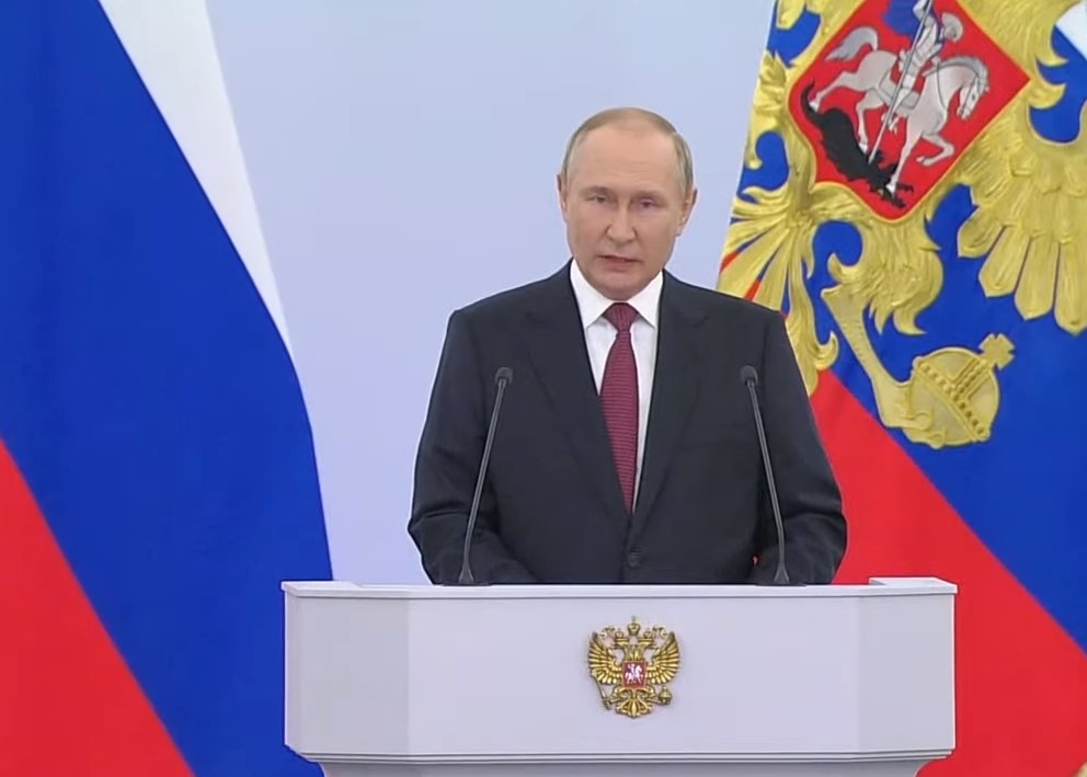 Ο πρόεδρος Βλαντιμίρ Πούτιν δήλωσε ότι υπάρχουν τέσσερις νέες περιοχές της Ρωσίας, καθώς ανακοίνωσε την επίσημη προσάρτηση των περιοχών Χερσώνα, Ζαπορίζια, Ντονέτσκ και Λουγκάνσκ της Ουκρανίας. Η ενσωμάτωση αυτών των τεσσάρων περιοχών «είναι η βούληση εκατομμυρίων ανθρώπων» και αποτελεί «αναπόσπαστο δικαίωμά τους», όπως αναφέρεται στον καταστατικό χάρτη του ΟΗΕ, υποστήριξε ο ρώσος πρόεδρος ενώ ξεκαθάρισε ότι για τη Μόσχα η απόφαση αυτή είναι «οριστική» και προειδοποίησε τη Δύση ότι «πρέπει να θυμάται ότι οι άνθρωποι της Χερσώνας, του Ντονέτσκ, του Λουγκάνσκ και τη Ζαπορίζια γίνονται πολίτες μας, για πάντα».